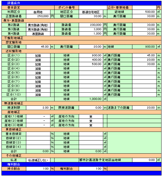 路線価図に記載されている内容と、敷地の形状がわかれば、計算できます。