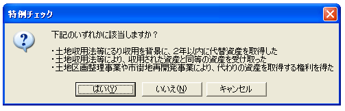 次に、特例が適用されるか否か、次のような質問が表示されますので、答えていきます。